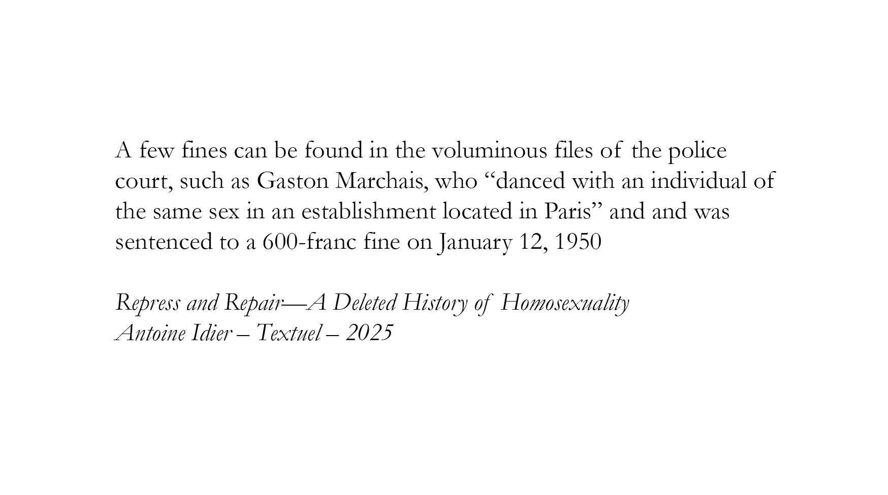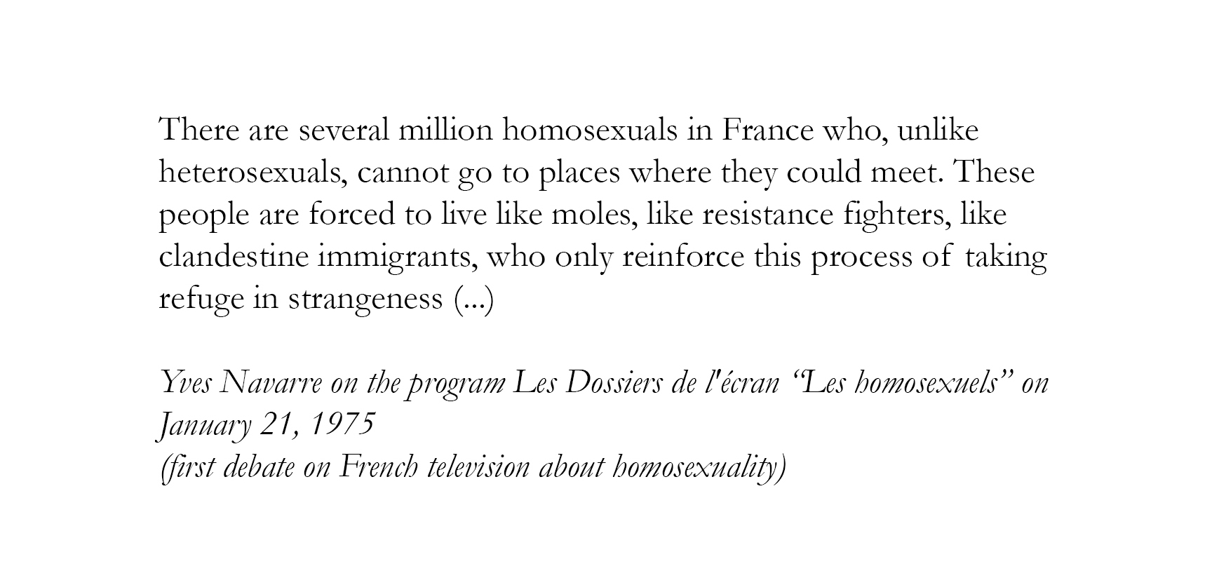 (...) “Most of our biography is located in fiction. Genet’s prisoners, Cocteau’s sailors; it was not possible to write in the first person, so we have a lack of information.”