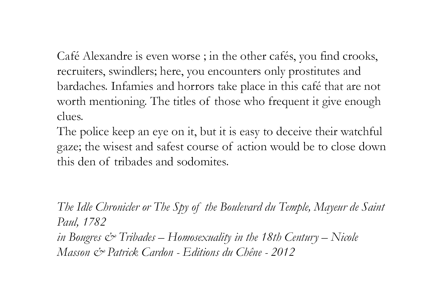 “Espaces fantômes” (Phantom Spaces) is aiming at building a phantasmagorical archaeology of gay spaces in Western Europe using real and imaginary archives.